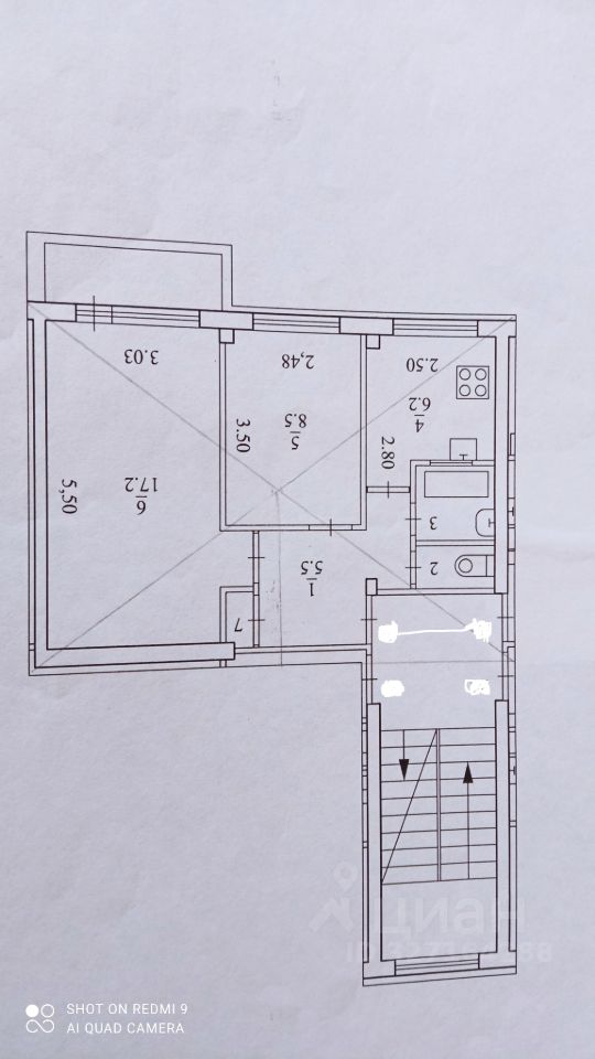 Состояние нормальное. По всей квартире ламинат, санузел панели ПВХ. В большой комнате натяжной потолок.Балкон не застеклен. Трубы поменяны, счетчики на воду и газ.